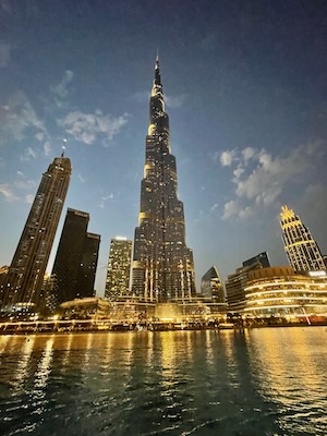 Zájemci mohou vyjet na vyhlídku na nejvyšší budově světa Burj Khalifa. Po setmění si vychutnáme show tančících fontán.