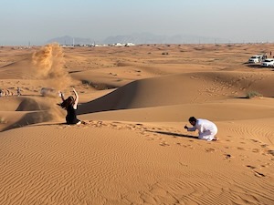 Zájemci mohou vyrazit do pouště Lahbab či Al Marmoom, vzdálené asi 45 minut od města. Po krátké zastávce na občerstvení si užijeme jízdu po dunách v autech s pohonem na všechna čtyři kola. Vrcholem odpoledne budou nezapomenutelné výhledy na západ slunce nad pouští.